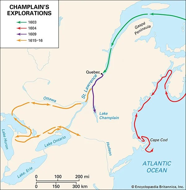 Champlain’s Explorations, Britannica Image.